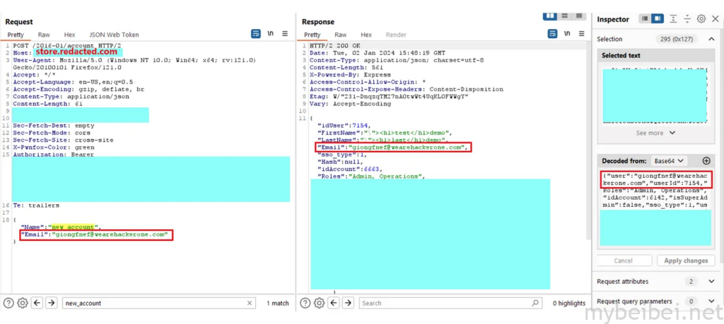 使用一个从未注册过的电子邮件尝试,然后在响应包中发现了一些奇怪的东西: