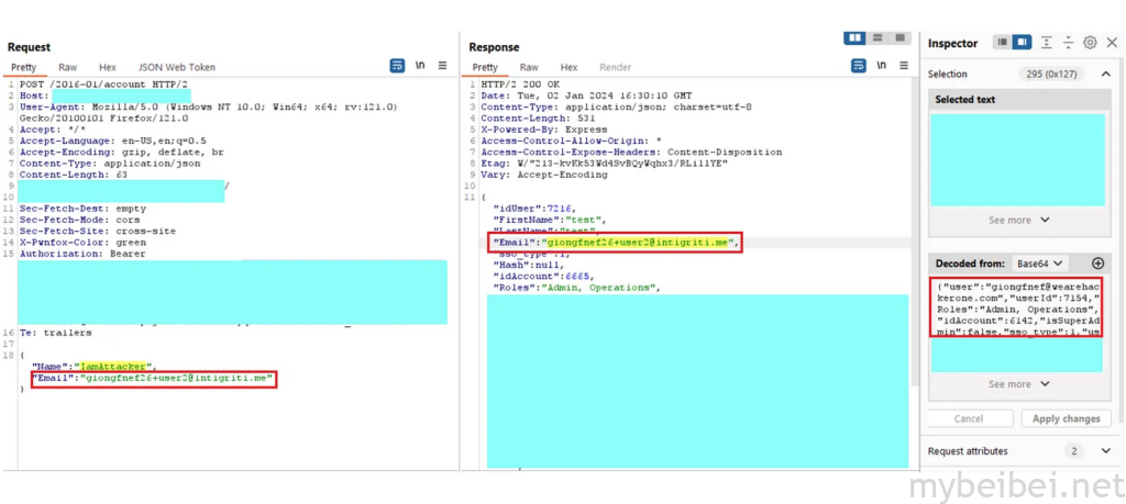 利用另一位用户[email protected](受害者电子邮件,拥有普通账户权限)。
