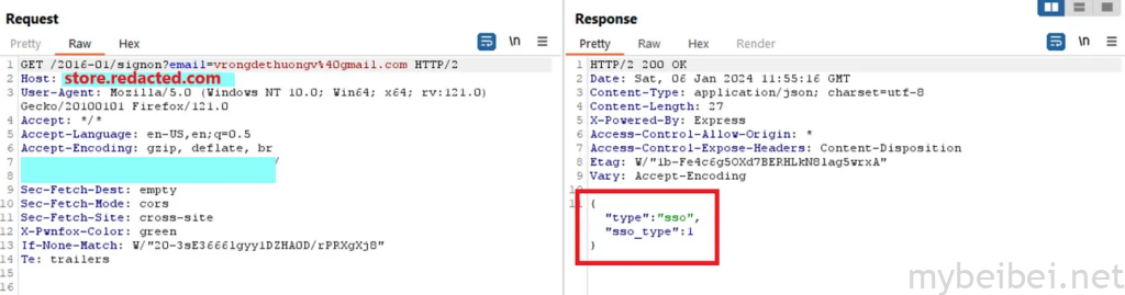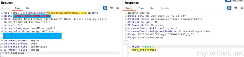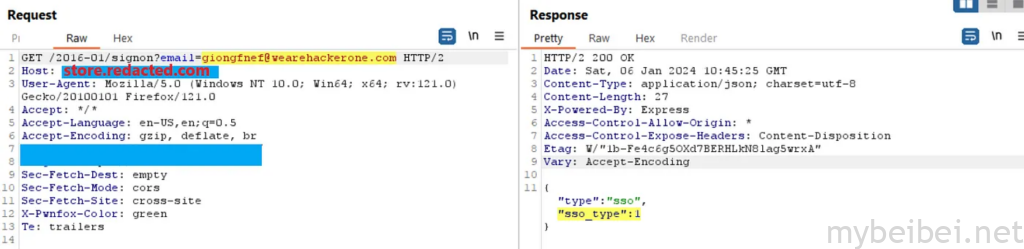 但是一件奇怪的事情是:注册时,网站被重定向到 sso.redacted.com -> 与之前遇到的 store.redacted.com 不同…