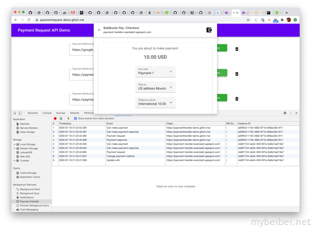 我们可以在 Payments 中指定一个 Service Worker,正如之前提到的,它只是一个普通的 Service Worker,并为其提供了额外的事件,因此,没有什么可以阻止我们使用 Service Worker 的标准功能。