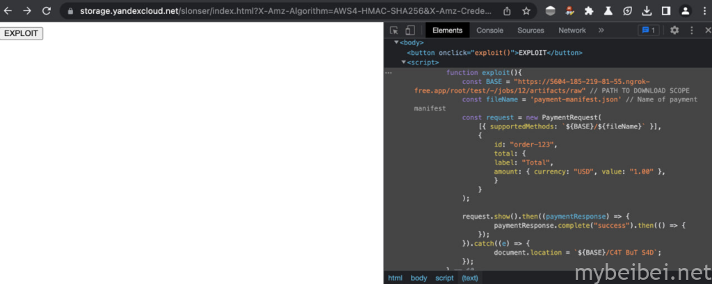 下面是提交给 Google 的视频(通过 Yandex S3 上的页面在 ngrok 子域上实现 XSS 攻击):
