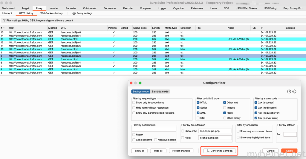BurpSuite这次更新,最大的特色是在HTTP history 中增加了一项名为“Bambda”的功能。