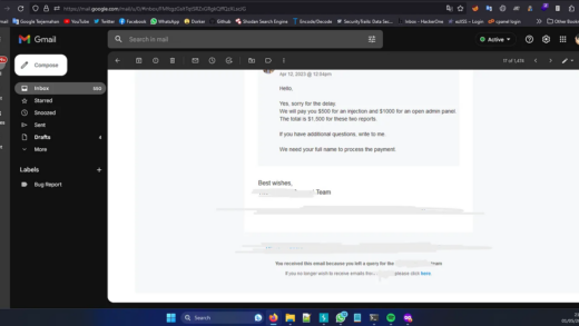 是时候报告漏洞了,目标公司认真审核了这两个漏洞,奖励的赏金也是预期的2倍。