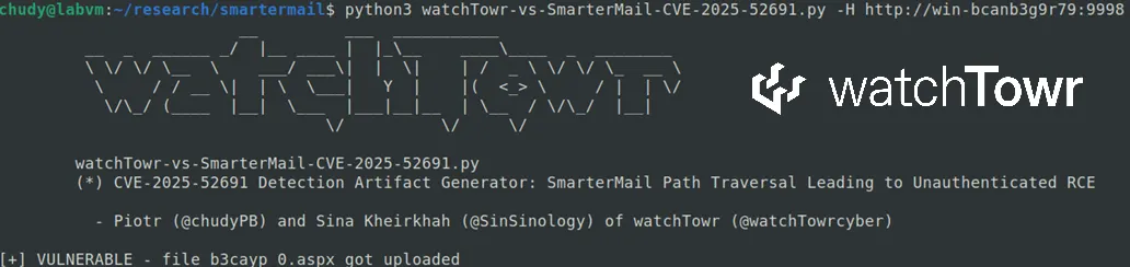 欢迎来到2026!就在大家静待每年一月例行的SSL VPN利用潮如约而至时,watchTowr Labs研究团队在圣诞节后重拾“消停不下的双手与闲不住的大脑”。去年12月,研究团队注意到新加坡网络安全局(CSA)发布的一份关于SmarterTools SmarterMail解决方案的漏洞公告——CVE-2025-52691。这是一个认证前远程代码执行漏洞,在通用漏洞评分系统中获得了满分10分。